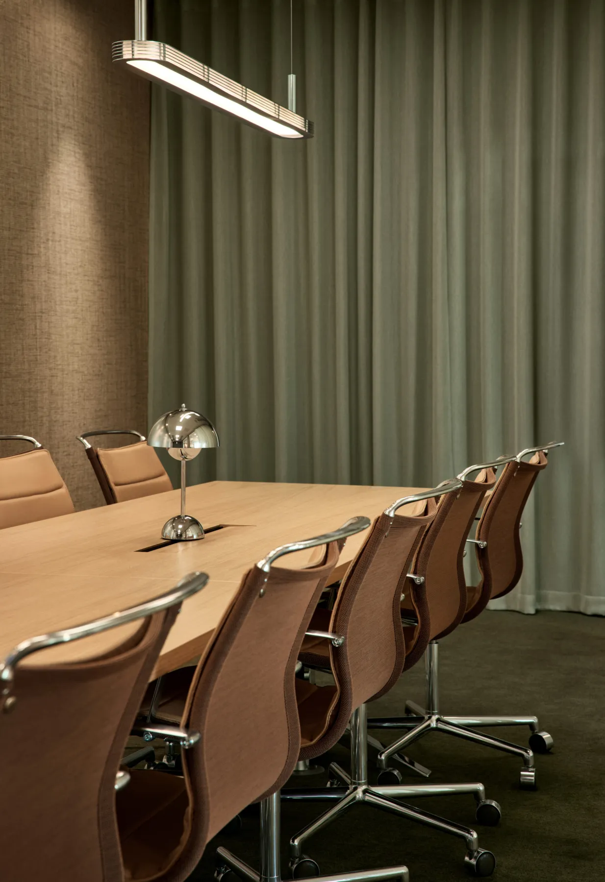 Vårt uppdrag var att utifrån AIX Arkitekters underlag leverera lös inredning, belysning och specialsnickeri i form av receptionsdisk och displayvägg. Återbruk var en central del av projektet. Till exempel kompletterades äldre stolar med nya.