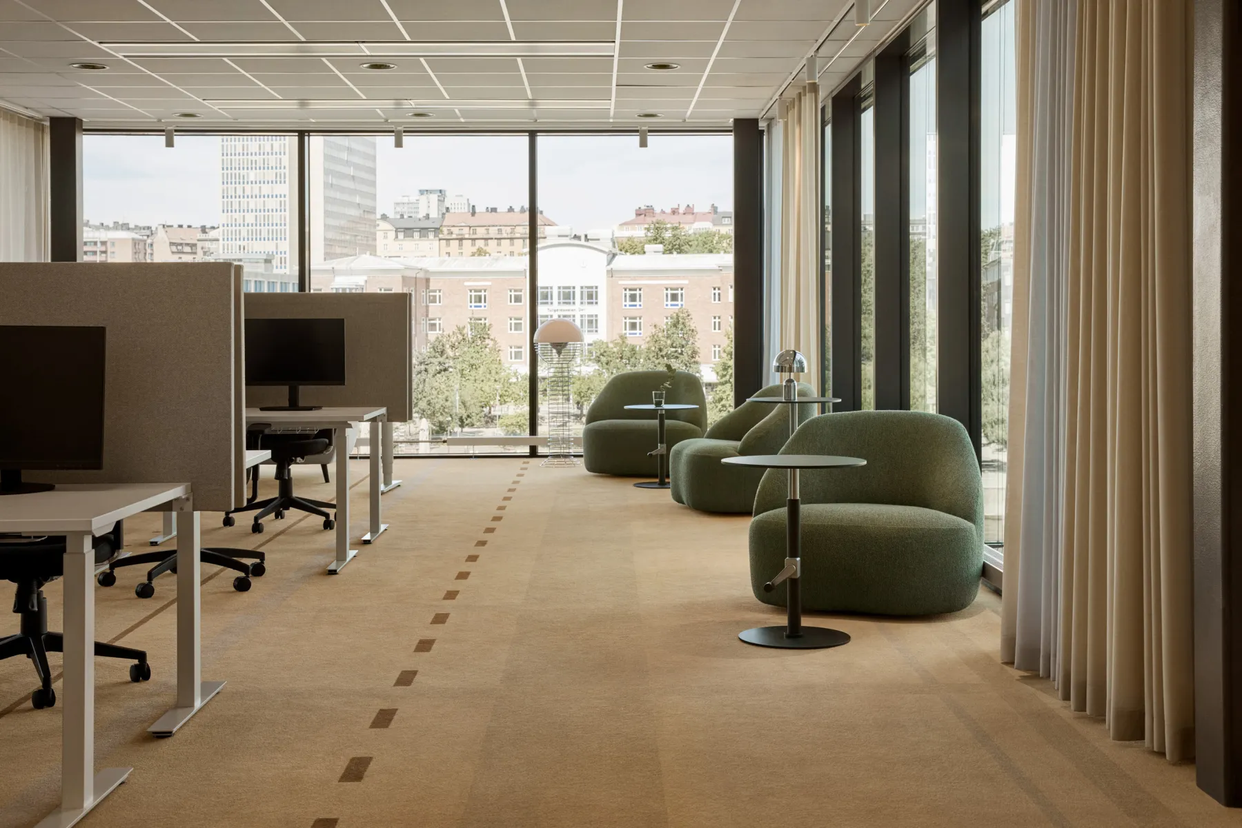 Utöver leveransen ansvarade vi även för montering och möblering av den 800 kvadratmeter stora lokalen, med målet att skapa en inbjudande och ombonad kontorsmiljö.