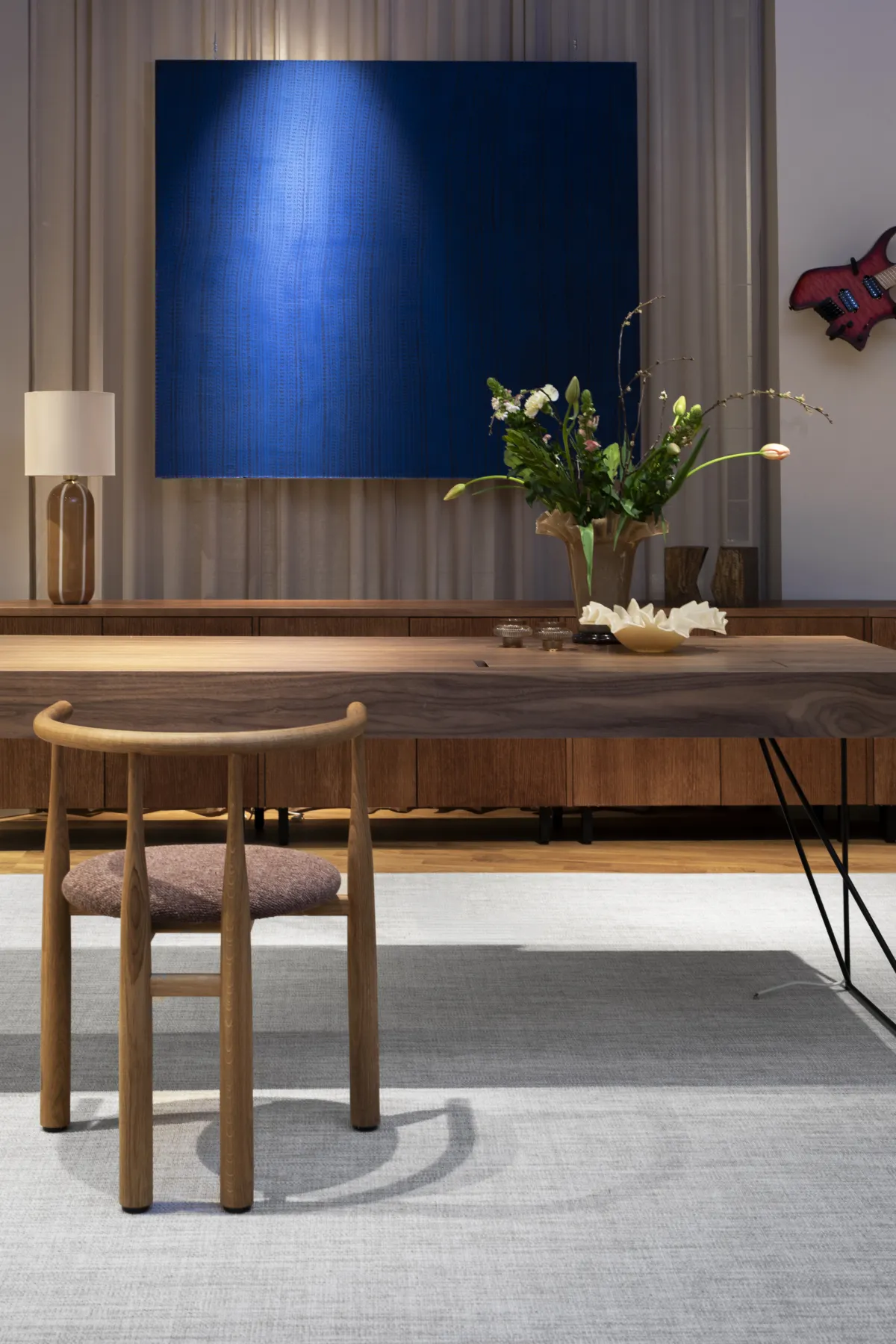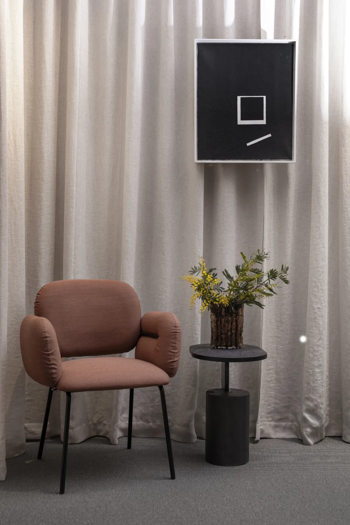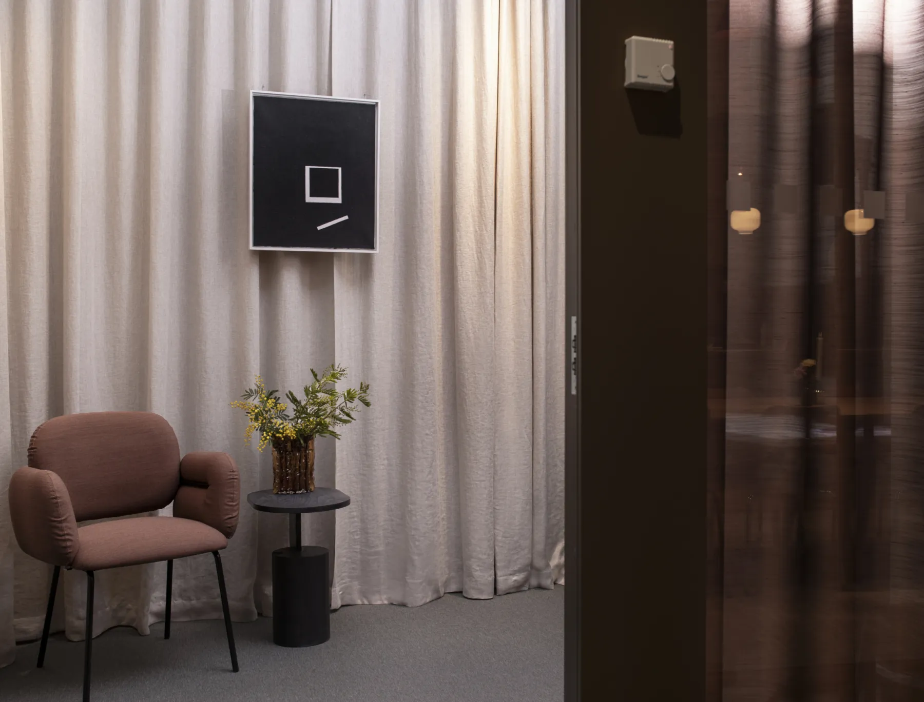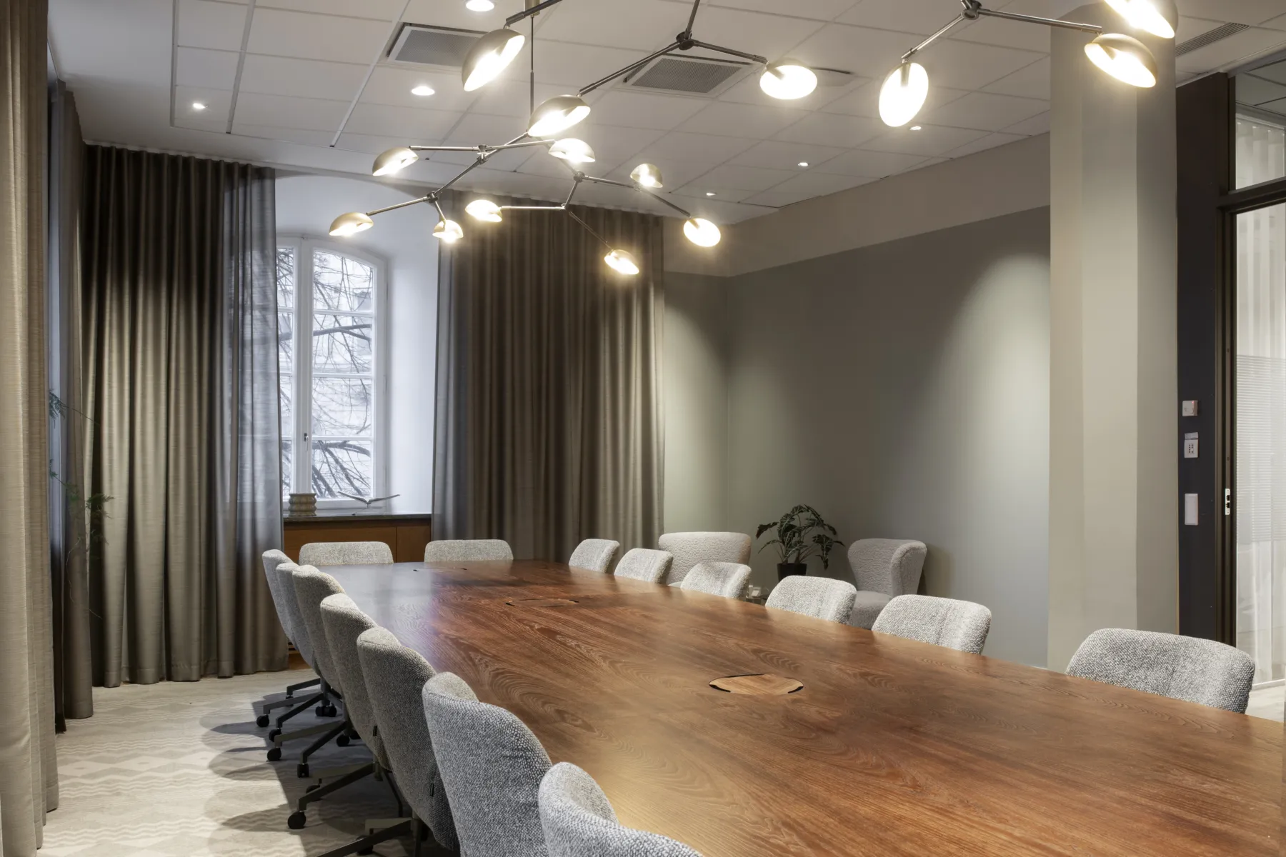 När koncept och idé var utformade hjälpte vi till att göra verklighet av det genom inköp och leverans av all lös inredning. I matsalen behölls stolarna, men kompletterades med nya stolar i samma stil och en specialritad taklampa som bidrar till rumsskapandet beroende på höjd. Inredningen generellt skulle vara lite eklektiskt där gammalt samsas med nytt och kännas hopplockad över tid. Den platsbyggda hyllan i entrén förstärker hemmakänslan direkt man kommer in. En plats där historien om dem och deras portföljbolag kan berättas med små artefakter och föremål.