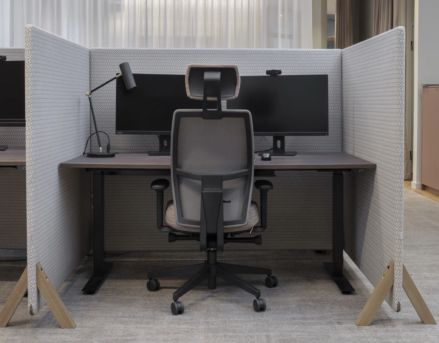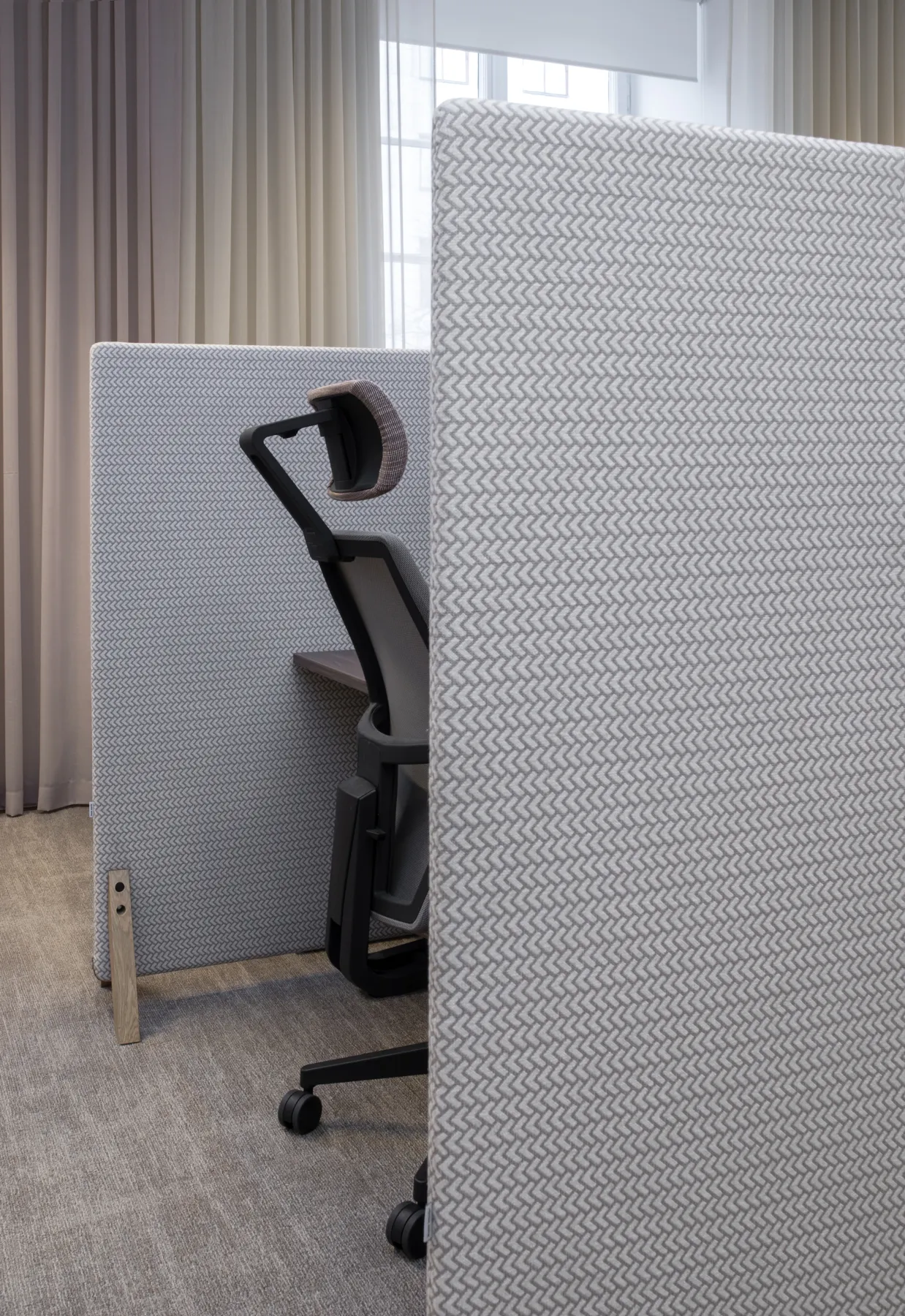 För att spegla Procuritas som bolag så tog Kaka Arkitekter fram en färgskala som är både elegant och klassiskt men inte för stel. Det stora kontorslandskapet delades upp med gardiner för att skapa känslan av fler rum, och textilier fick hjälpa till för att skapa en ombonad miljö med färg och mönster, och samtidigt skapa bättre akustik.